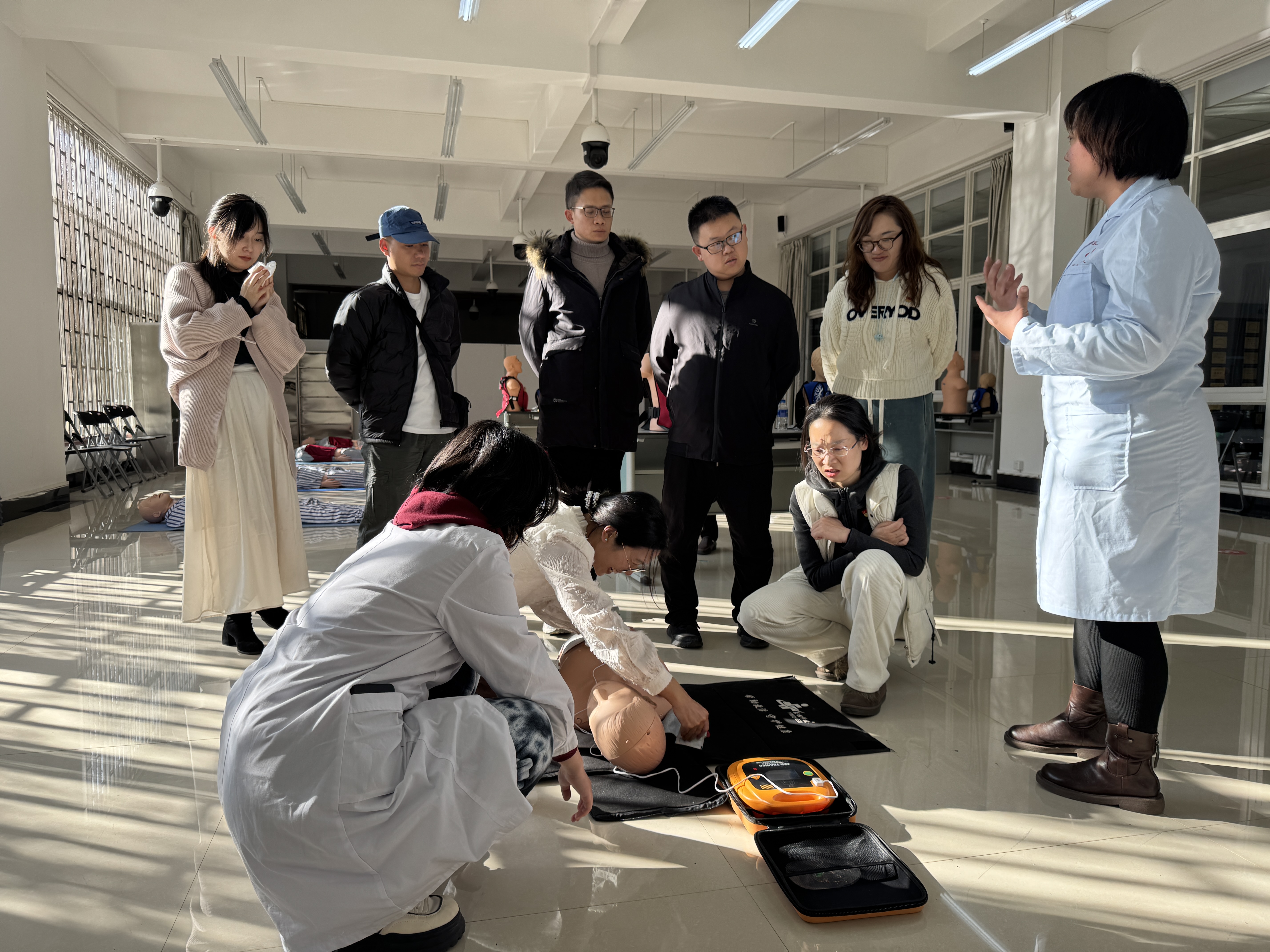 12月27日下午,财政部云南监管局监管三处干部职工到学校开展“走进医学科学,关爱生命健康”为主题的交流学习,临床技能中心承接了急救知识培训环节。