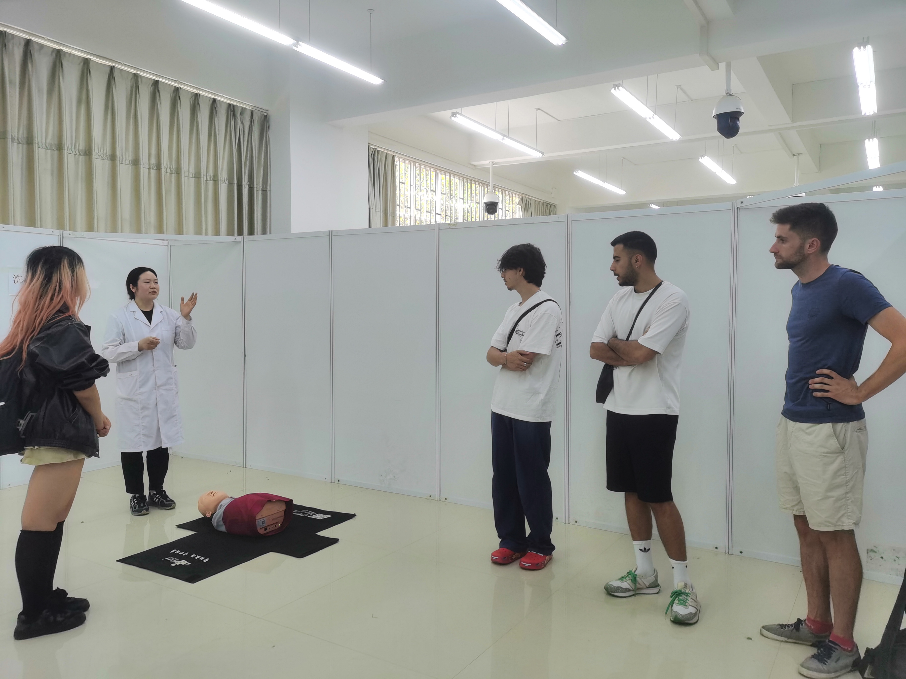 7月11日下午,法国洛林大学南锡医学院学生团组到中心参观交流。中心教师详细介绍了中心的各个功能区、模拟教学设备并指导来访学生体验了急救基本操作。