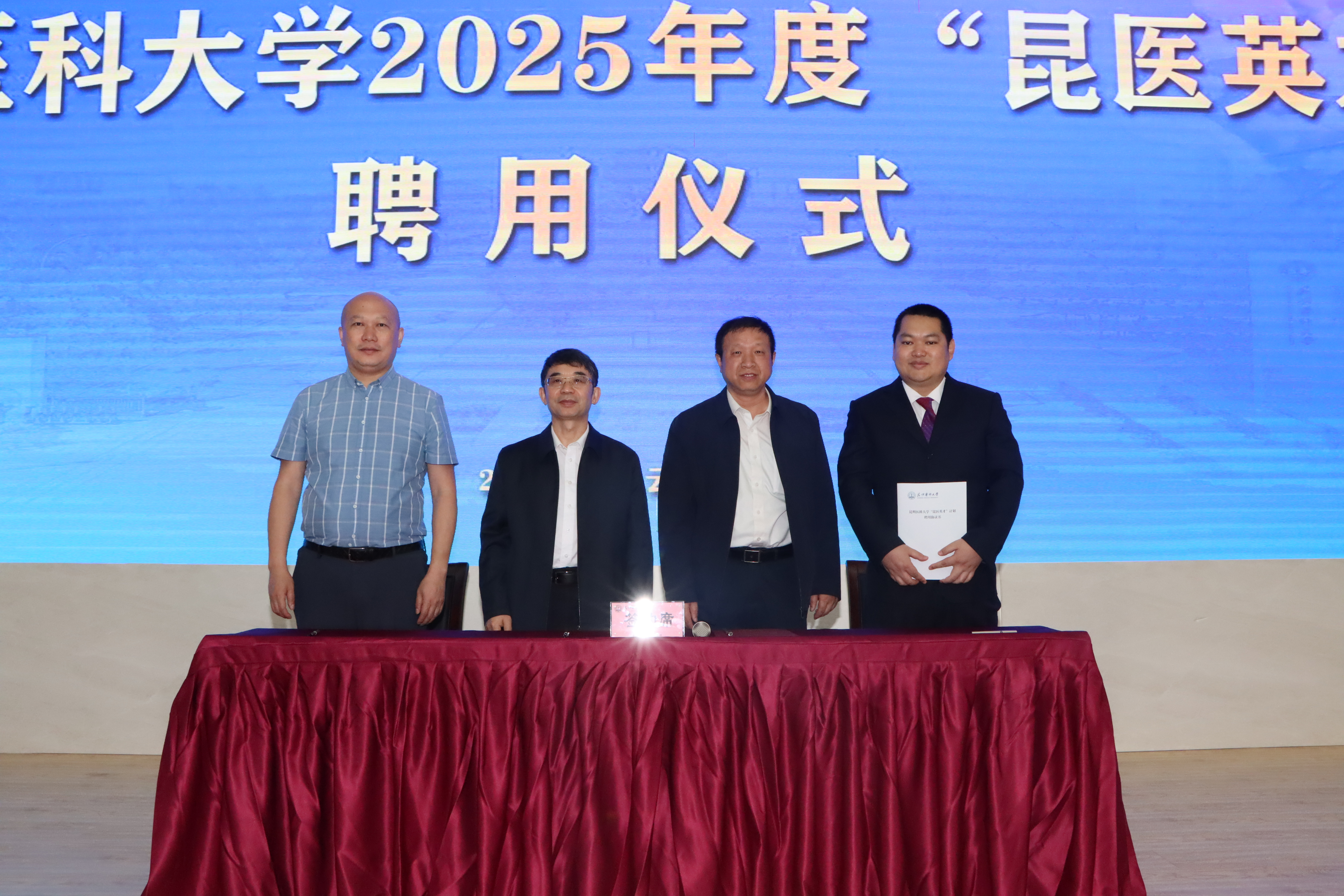 尹向阳在聘用仪式上致辞。他强调,“昆医英才”计划是学校深化人才发展体制机制改革的重要举措,通过创新实施校内人才“年薪制”、推进外引内培“双轨同制”,实现校内外人才“同目标引领、同待遇保障、同考核激励”。尹向阳指出,学校将坚持“破五唯”与“立新标”并举,优化评价体系;坚持“给资源”与“赋自主”同步,释放创新活力;坚持“严要求”与“暖服务”结合,增强人才归属感,以最大诚意打造“近悦远来”的人才生态。
