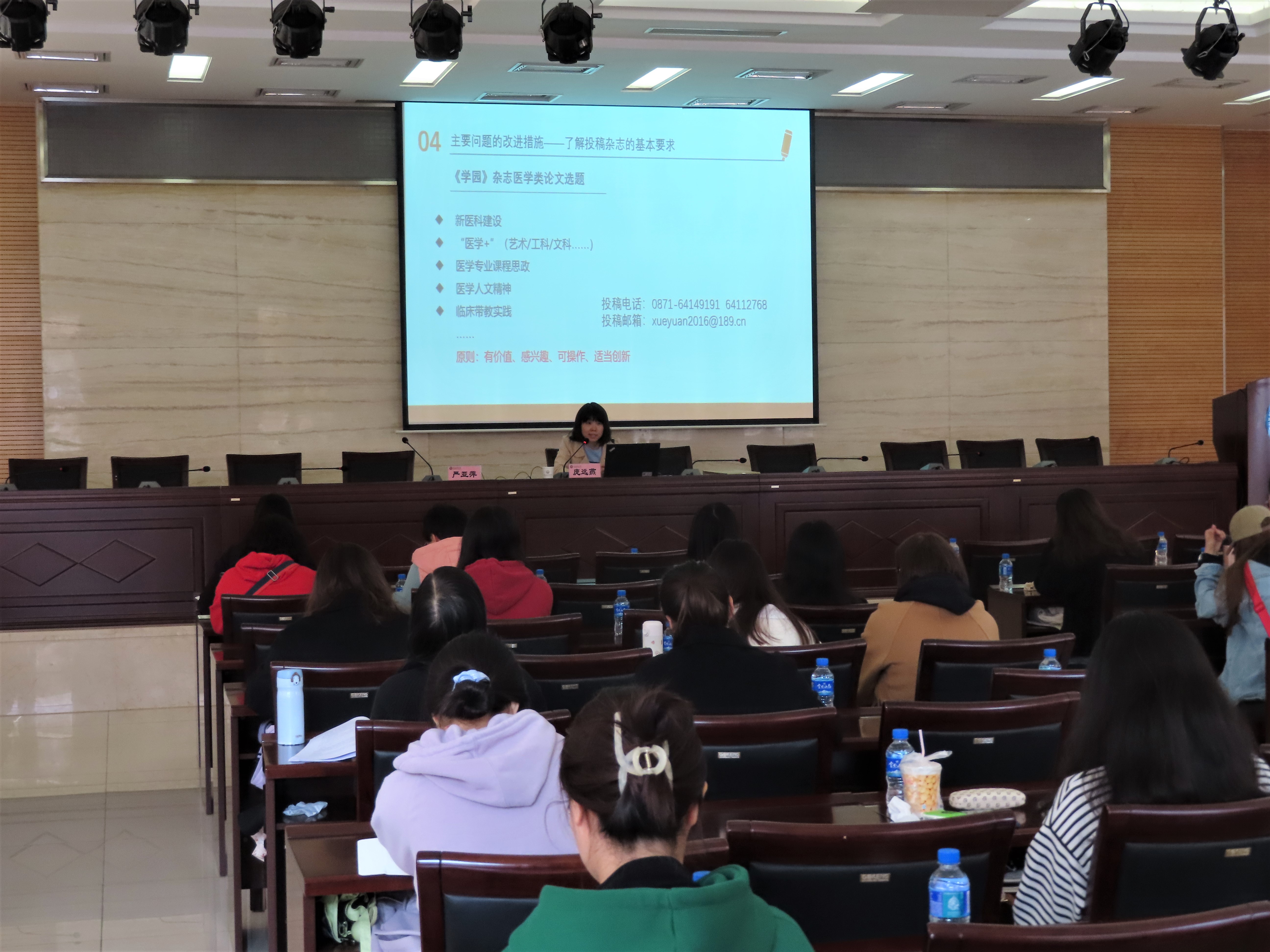 她从《学园》的定位、投稿的要求、重点栏目简介;学术论文审稿中发现的问题;医学类学术论文存在的问题;主要问题的改进措施四个方面作了详细的讲授。讲授内容丰富、 目标清晰,分析精辟,很接地气,也有较强的针对性和可操作性,对于我们提升学术论文写作能力,提高投稿命中率具有很强的指导意义,也拓宽了学术论文投稿的渠道。在互动环节,庞老师解疑答惑,有的方式的进行了解答,增强了沟通和理解,实现了作者和编辑的换位思考。