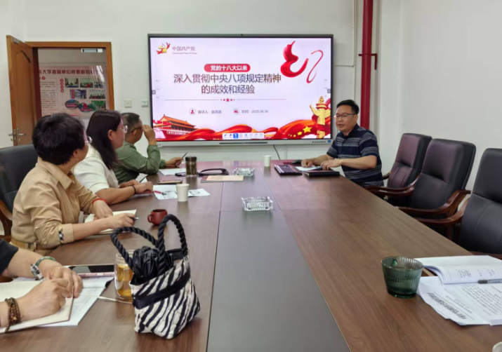 6月30日上午,直属单位第四党支部组织全体党员在学报编辑部会议室开展党课学习,直属单位党委委员赵洪波、学报编辑部主任木丽仙分别讲授深入贯彻中央八项规定精神学习教育专题党课。