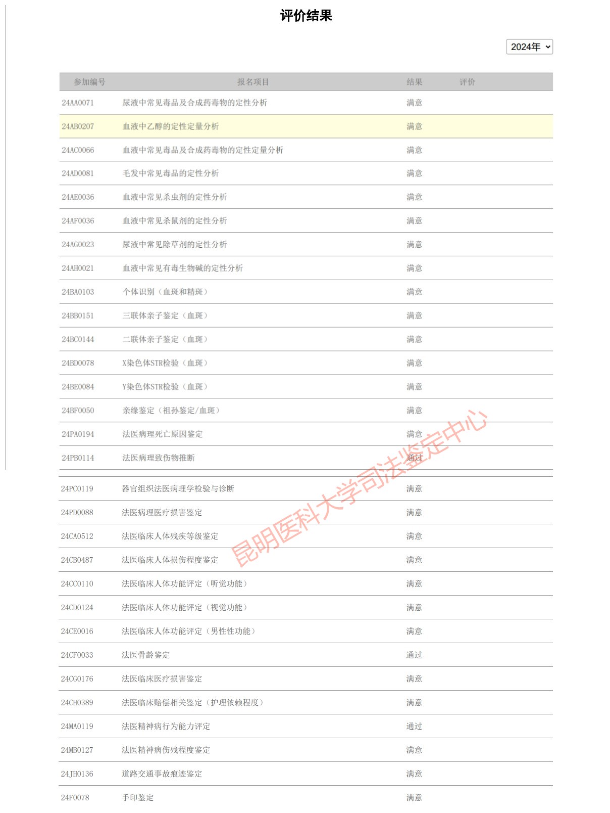 中心参加的能力验证项目涉及多个领域和专业方向,全面体现了中心深厚且广泛的技术能力储备。在整个能力验证活动过程中,中心凭借扎实的专业知识、规范的操作流程、先进的技术设备以及严格的质量控制体系,彰显出卓越的实力。能力验证是衡量司法鉴定机构技术能力与管理水平的重要方式,对确保鉴定结果的科学性、准确性和可靠性有着至关重要的意义。27项获得满意成绩,这既是对中心以往工作的肯定,更是中心践行自身高质量发展要求的有力体现。中心在未来的工作中将持续提高技术能力和服务水平,为社会提供更优质、高效、精准的鉴定服务,进一步为云南省司法鉴定事业的发展作出更大贡献。