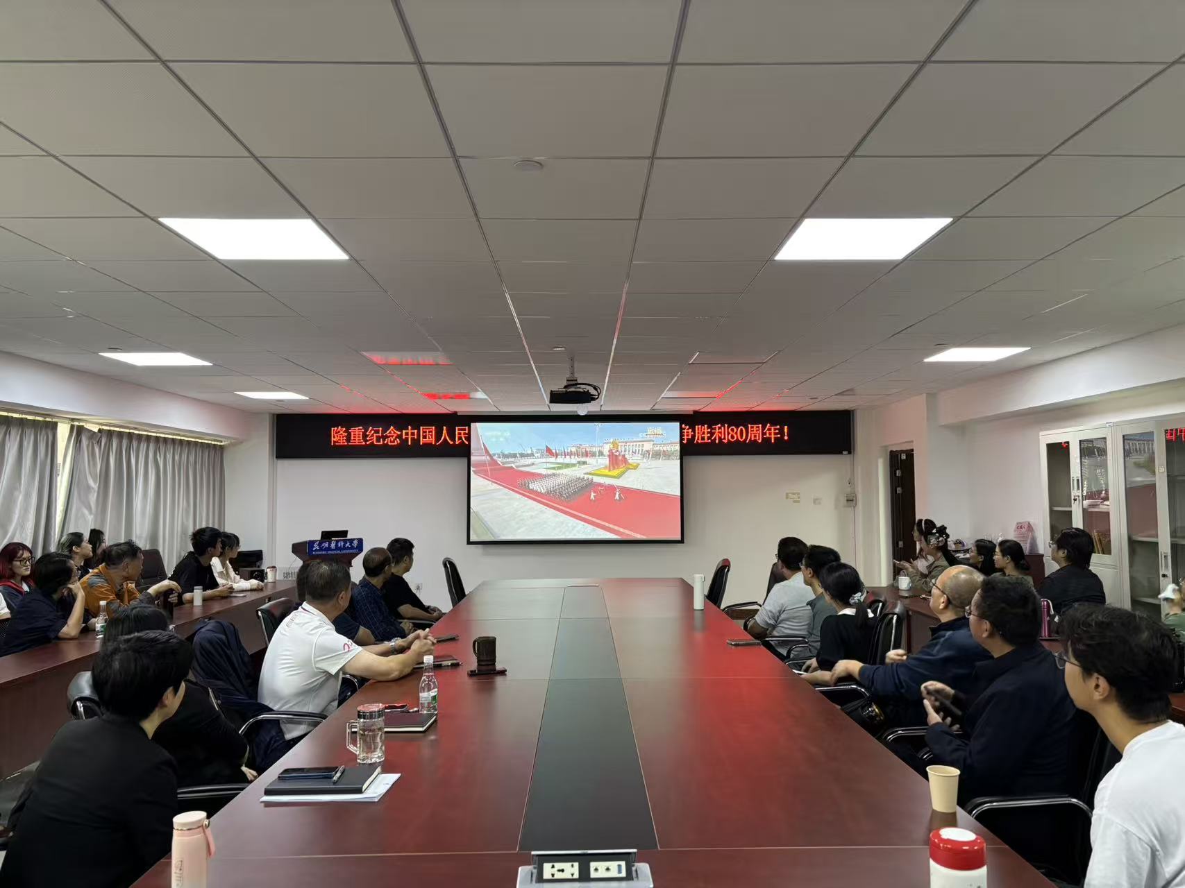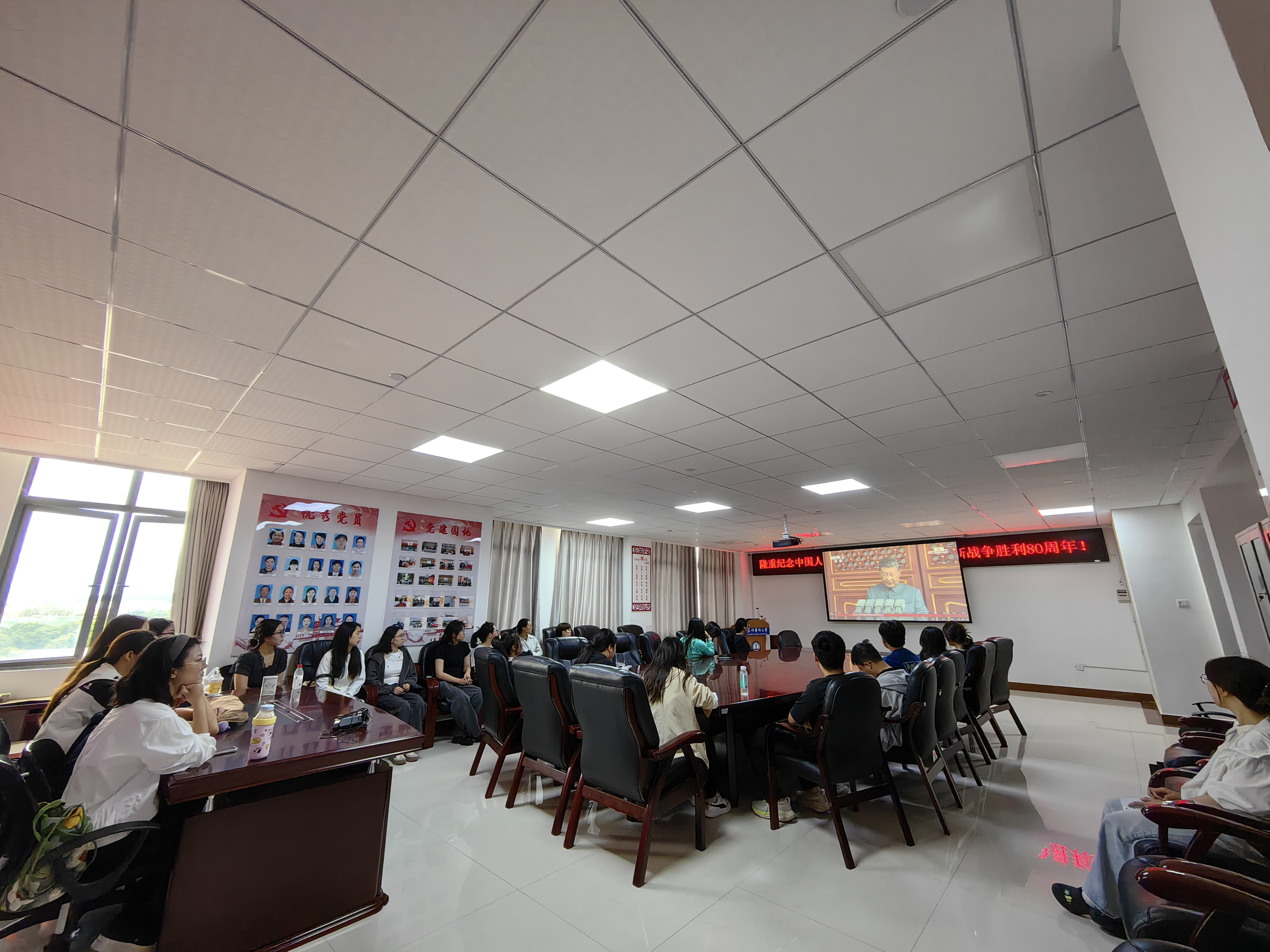 2025年9月3日上午9点,基础医学院组织师生代表集中收听收看纪念中国人民抗日战争暨世界反法西斯战争胜利80周年大会实况直播。学院党政领导和师生代表分别在三个分会场集体收看大会直播,同时各党支部组织师生通过各类网络直播平台,在线收听收看。