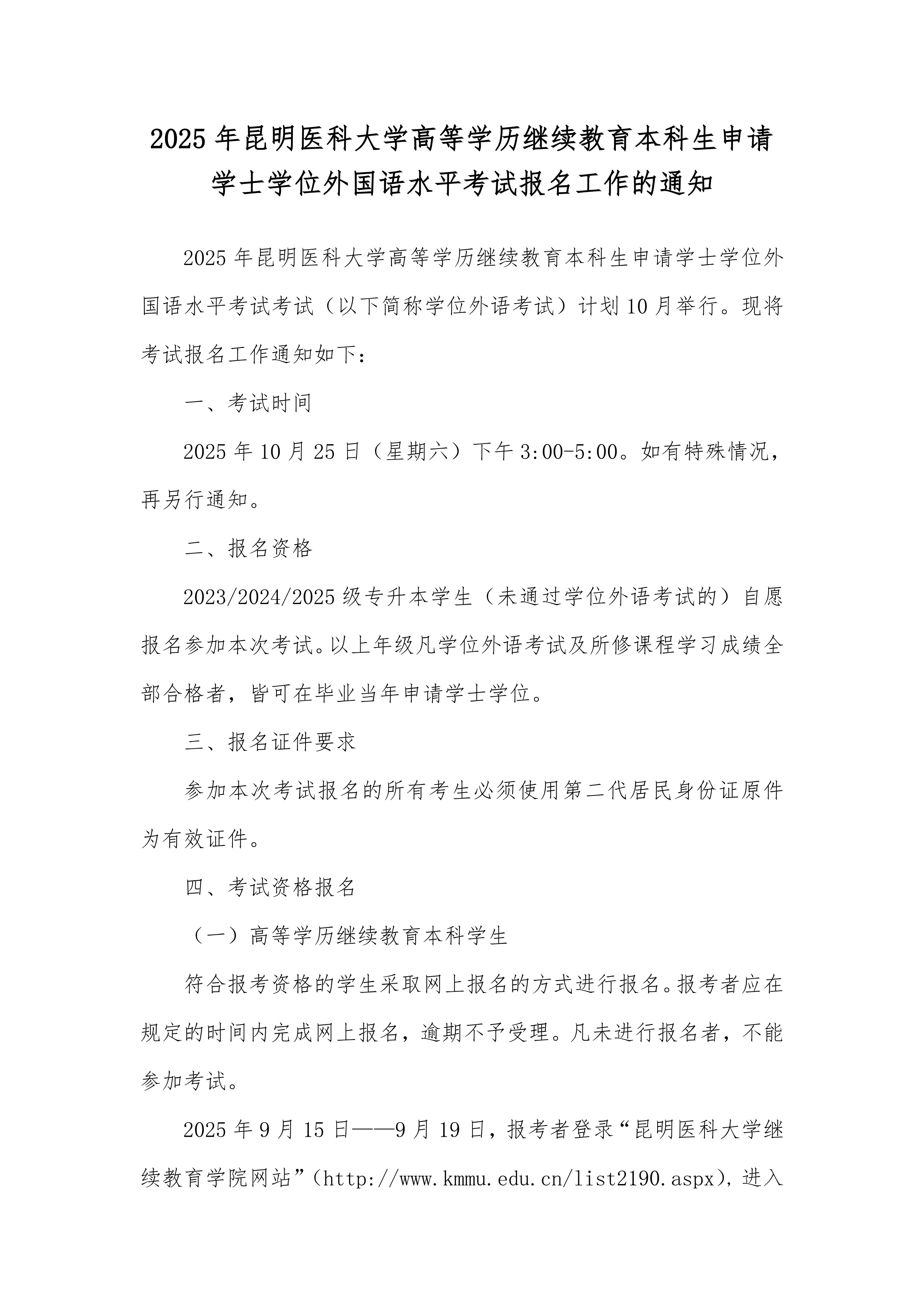 2025年九州·(中国)集团有限公司,高等学历继续教育本科生申请学士学位外国语水平考试报名工作的通知