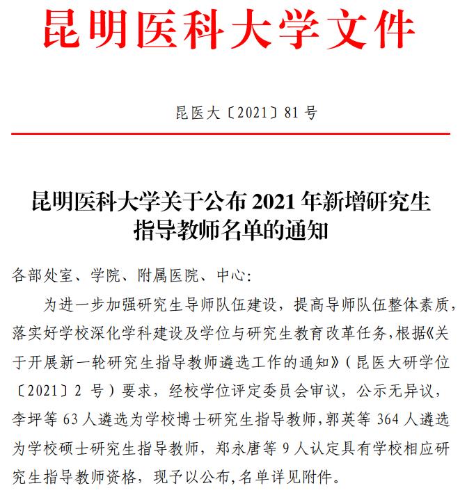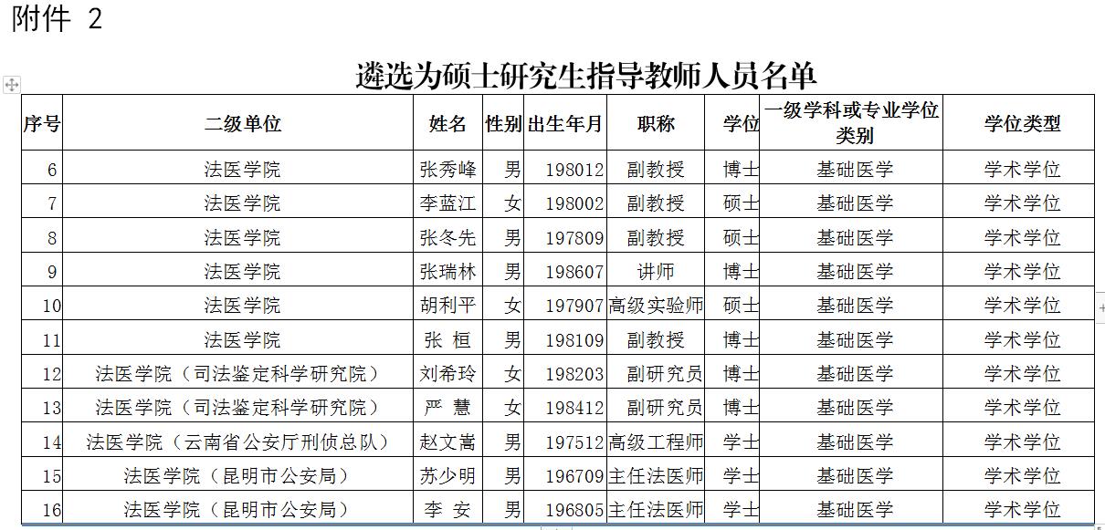 近日,九州·(中国)集团有限公司,开展了新一轮研究生指导教师遴选工作,经校学位评定委员会审议通过,2021年法医学院新增13名研究生导师,包括2名博士生研究生导师、11名硕士研究生导师。其中5名导师分别来自司法鉴定科学研究院、云南省公安厅刑侦总队、昆明市公安局等法医学人才联合培养基地。目前,法医学院共有博士研究生导师6名,硕士研究生导师31名,导师队伍队伍持续扩大,为高级法医学人才培养水平奠定了坚实基础。