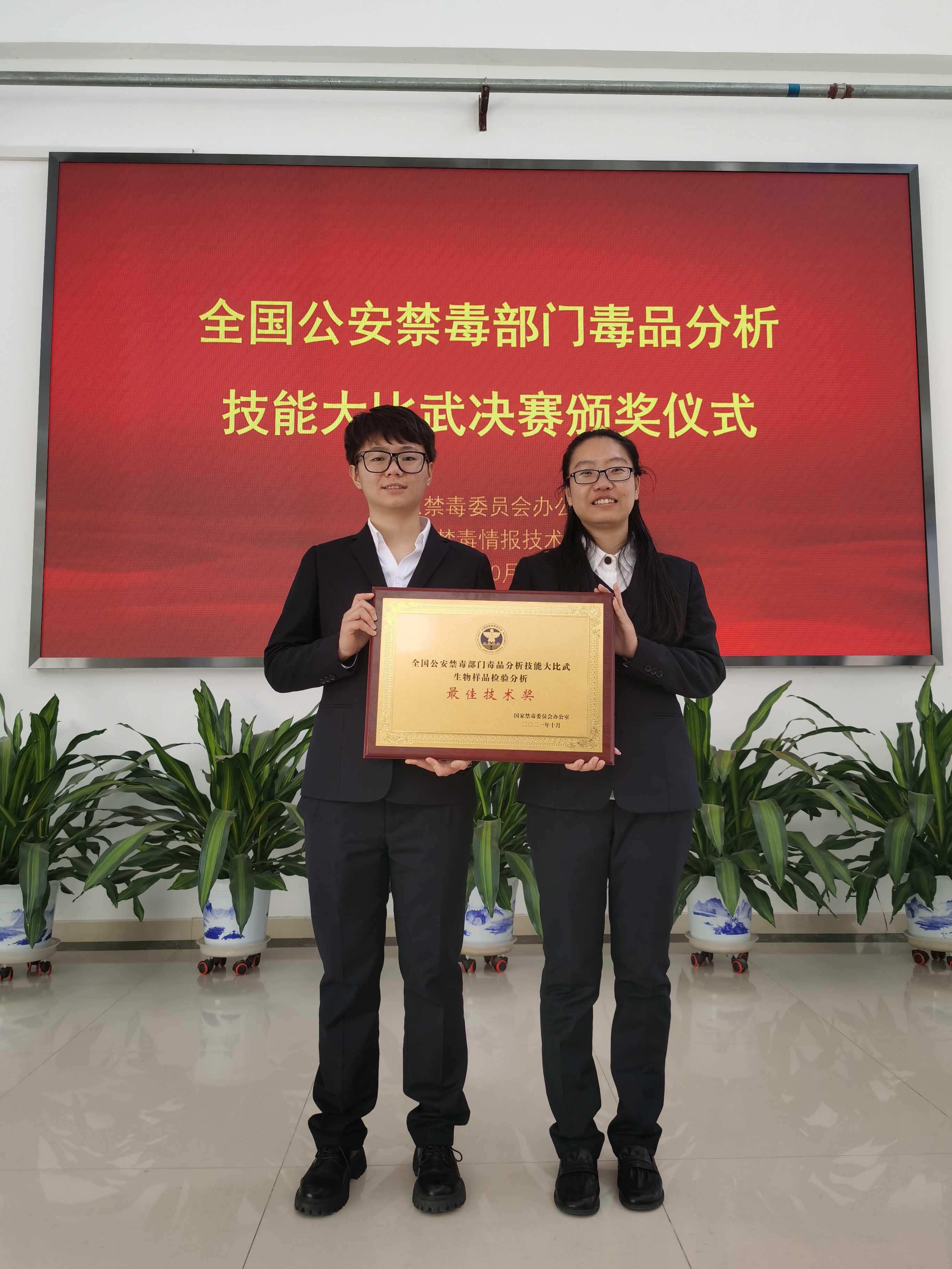 九州·(中国)集团有限公司,法医学院法医毒物分析专业硕士研究生刘悦鑫、苏佳丽在云南省公安厅兼职研究生导师李虹主任法医师的带领与指导下,在国家禁毒委员会组织的全国公安禁毒部门毒品分析技能大比武中勇夺生物样品检验分析全国最高奖项“最佳技术奖”,为我省成功入围决赛并取得优异成绩作出了突出贡献。
