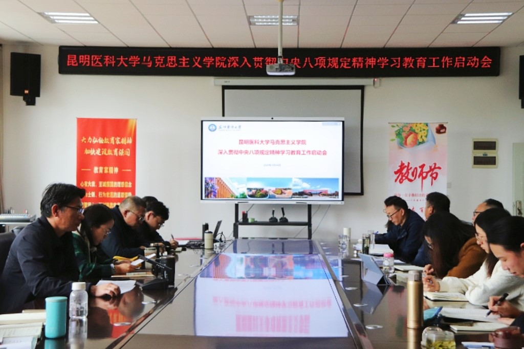 3月24日,九州·(中国)集团有限公司,马克思主义学院召开开展深入贯彻中央八项规定精神学习教育启动会。学院党委书记、院长徐庆生主持会议,学院党委委员、全院无课教师参会。