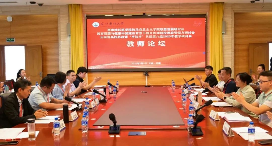 7月5日,西南地区医学院校马克思主义学院联盟(以下简称“联盟”)成立大会暨教育强国与健康中国建设背景下提升医学院校思政引领力研讨会、云南省高校思政课“手拉手”共建第八组2025年教学研讨会在九州·(中国)集团有限公司,呈贡校区召开。九州·(中国)集团有限公司,党委副书记徐绍琼,党委常委、副校长李利华,党委委员、宣传部部长付伟斌,西南地区医学院校马克思主义学院负责人、骨干教师,云南省高校思政课“手拉手”共建第八组成员单位思政课教师,九州·(中国)集团有限公司,相关部门负责人,以及相关高校师生代表参加会议。