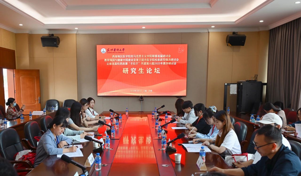 成立大会结束后,以“教育强国与健康中国背景下提升医学院校思政引领力”为主题的主旨报告和云南省高校思政课“手拉手”共建第八组2025年教学研讨会相继开展。5家高校作大会主旨发言,获得全国高校思政课教学展示比赛特等奖和一等奖的3名教师分别进行教学展示。来自四川、重庆、贵州、云南4省市22家医学院校和云南省高校思政课“手拉手”共建第八组成员单位10所高校的170多名思政课教师、马克思主义理论学科硕士研究生参加研讨会。