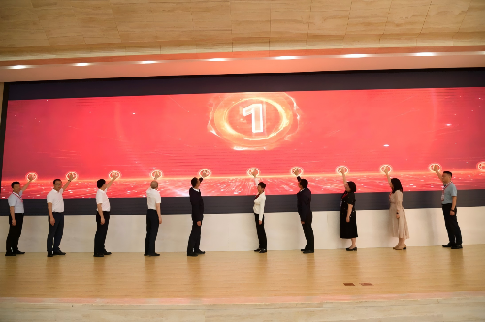 李利华宣布联盟成立,与会领导触摸电子屏,共同开启联盟成立启动仪式。