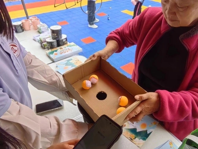 活动现场,通过设置重阳节宣传展板,给社区居民们发放重阳节宣传册,开展“插茱萸”“祝福在我手”“重阳套圈”“消灭疾病”“重阳大转盘”等有趣小游戏,为社区居民送上了欢乐和真诚的祝福,更是让他们感受到了关爱和温暖。