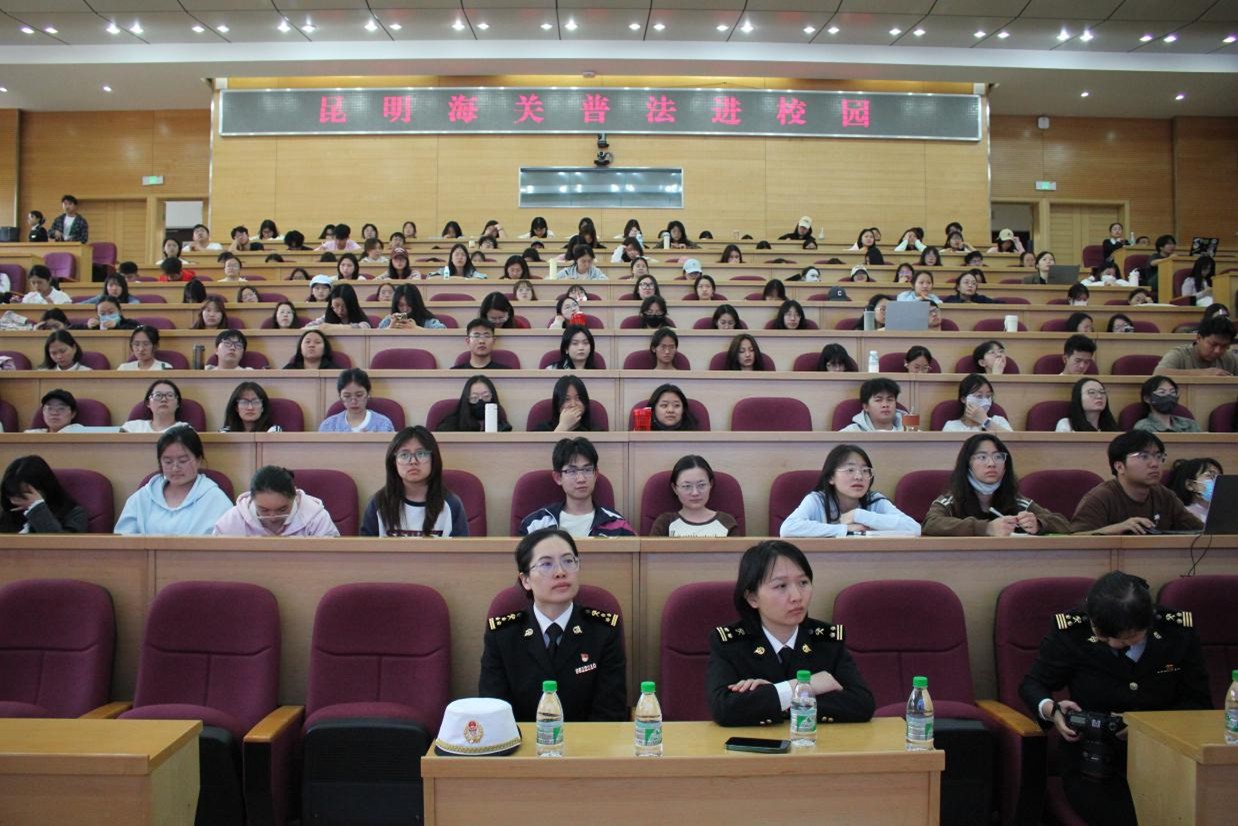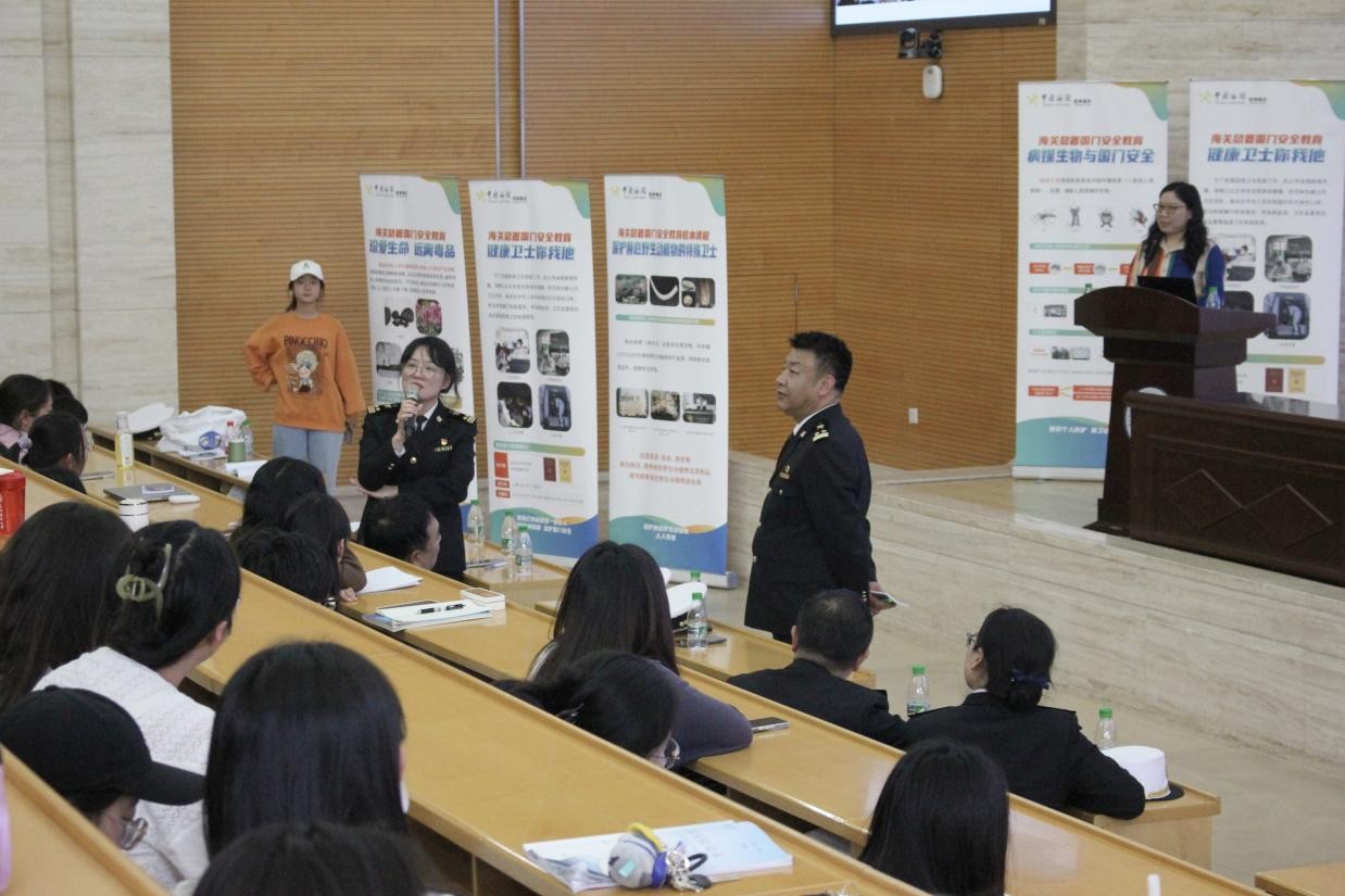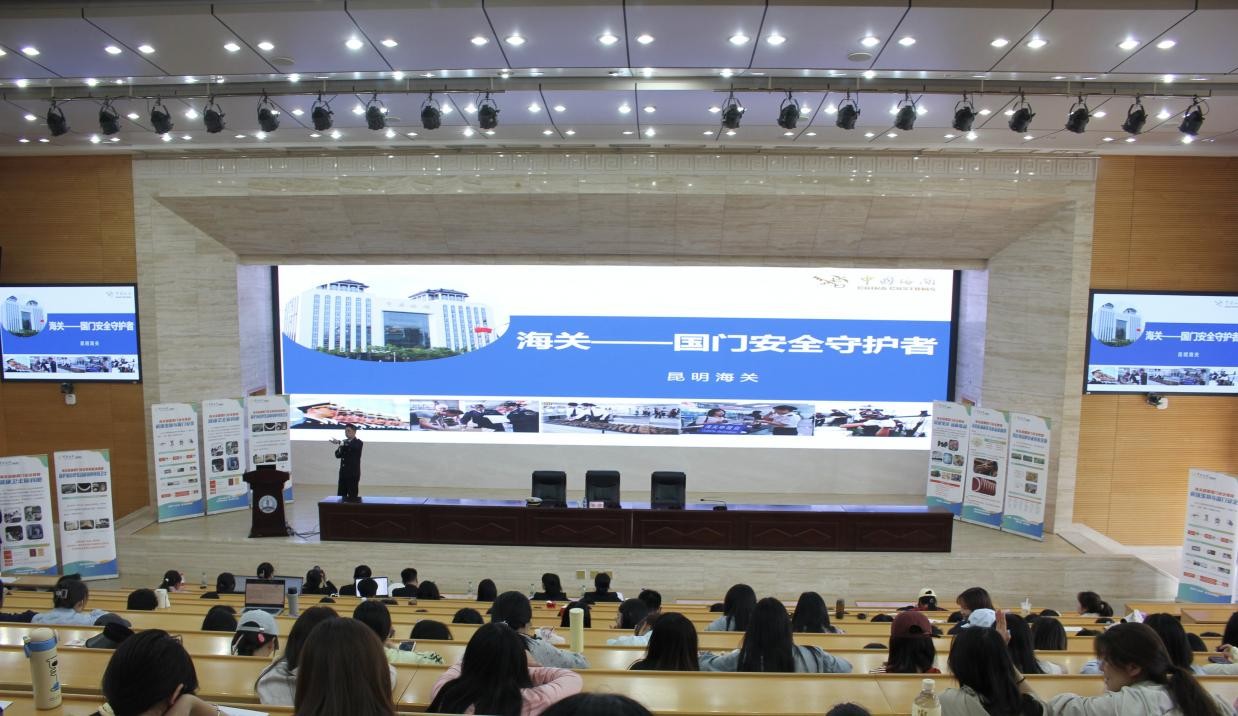 昆明海关卫生检疫处负责人、口岸监管处及动植物检疫处工作人员围绕“海关,国门安全守护者”为主题,结合云南边境特点和大量生动详实的案例,以专题讲座的形式向师生讲解了海关卫生检疫、动植物检疫、毒品查缉等核心职责与实践成果。