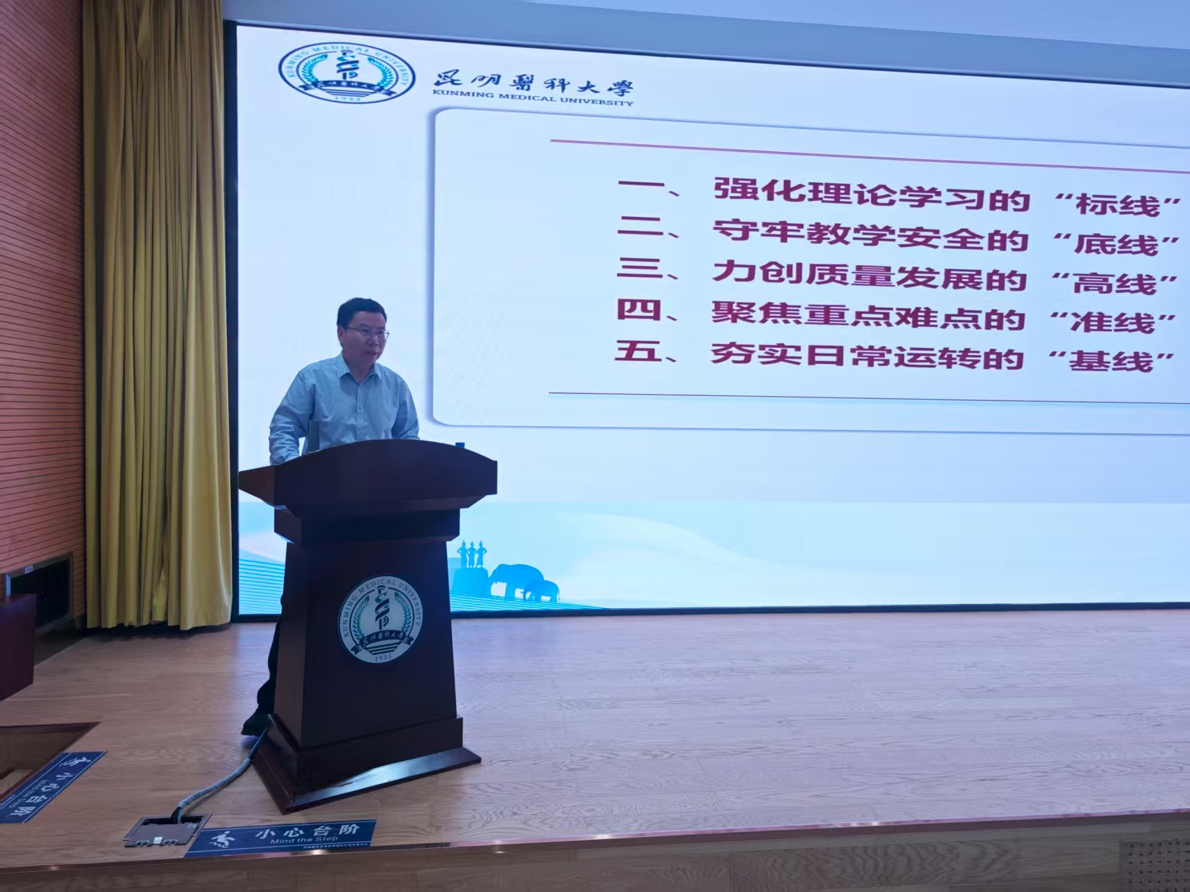 何永文强调,本科教育作为学生构建知识体系、养成思维能力的关键阶段,是建设高水平开放型医科大学的基石。本科教育教学工作需重点把握5个核心维度:一是强化理论学习的“标线”,把准育人方向;二是守牢教学安全的“底线”,筑牢发展根基;三是力创质量发展的“高线”,提升核心指标;四是聚焦重点难点的“准线”,突破关键瓶颈;五是夯实日常运转的“基线”,优化管理效能。全体教医护职工要锚定高水平开放型医科大学目标,主动想、扎实干、看效果,奋力推进学校本科教育教学高质量发展。