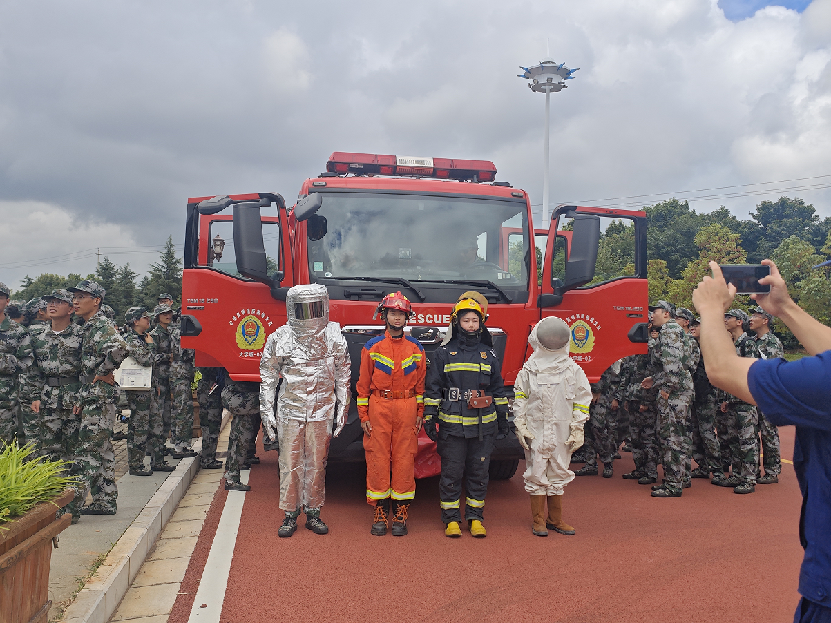 讲座结束后,呈贡区应急救援大队的消防官兵现场进行消防逃生救援展演,组织新生开展消防装具穿戴体验、消防器材使用、初起火灾扑救、模拟真实场景的逃生等活动,让大家在实践中亲自体验消防应急救援官兵工作的艰辛,进一步强化消防器材使用、火灾现场自救逃生等安全技能。