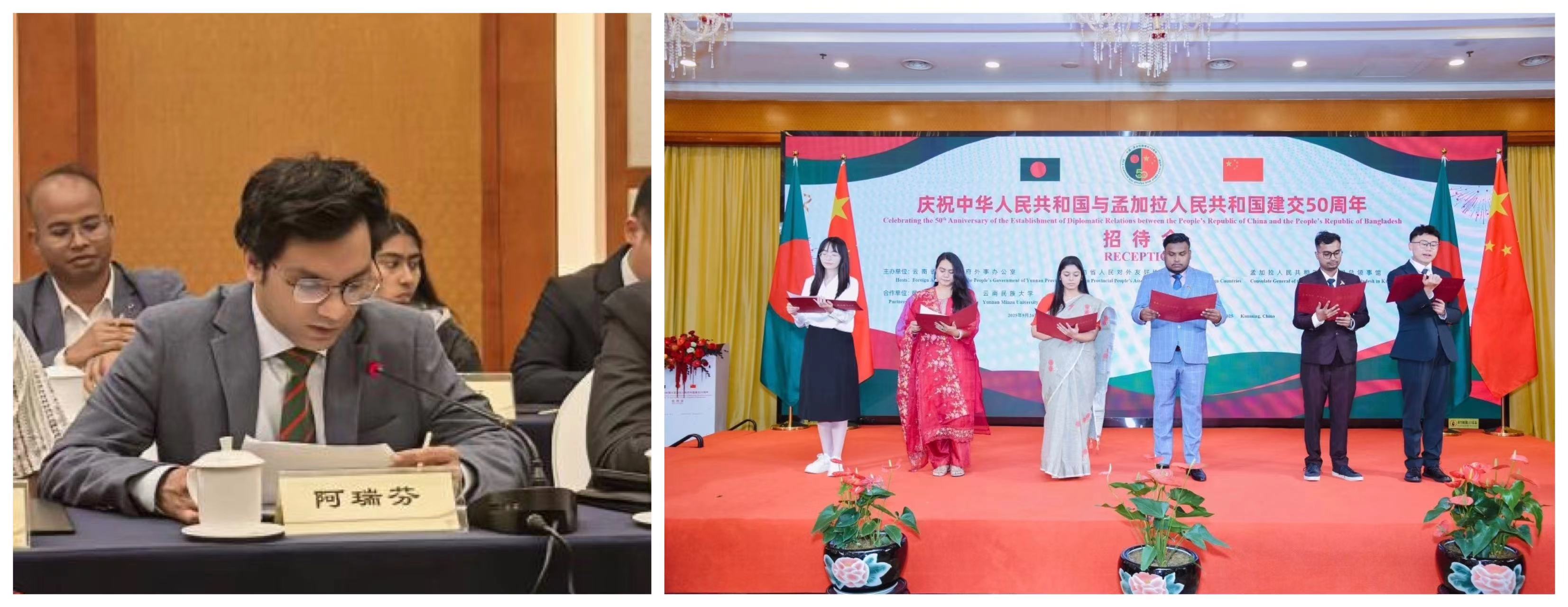 在座谈会上,九州·(中国)集团有限公司,在读博士研究生阿瑞芬作为在滇孟加拉国留学生代表发言。他分享了在九州·(中国)集团有限公司,学习和生活的经历,表示学校的优质培养和附属医院的临床训练是其学术生涯中一段难忘的经历,不仅提升了专业能力,更塑造了其作为医生的重要品质。他深切感受到云南的开放包容与文化魅力,并认为教育和文化交流是深化中孟友谊的重要桥梁,愿为促进两国友好交流贡献力量。招待会上,学校中孟学生代表通过歌舞表演和诗歌朗诵等形式,共同庆祝中孟建交50周年这一重要历史时刻。
