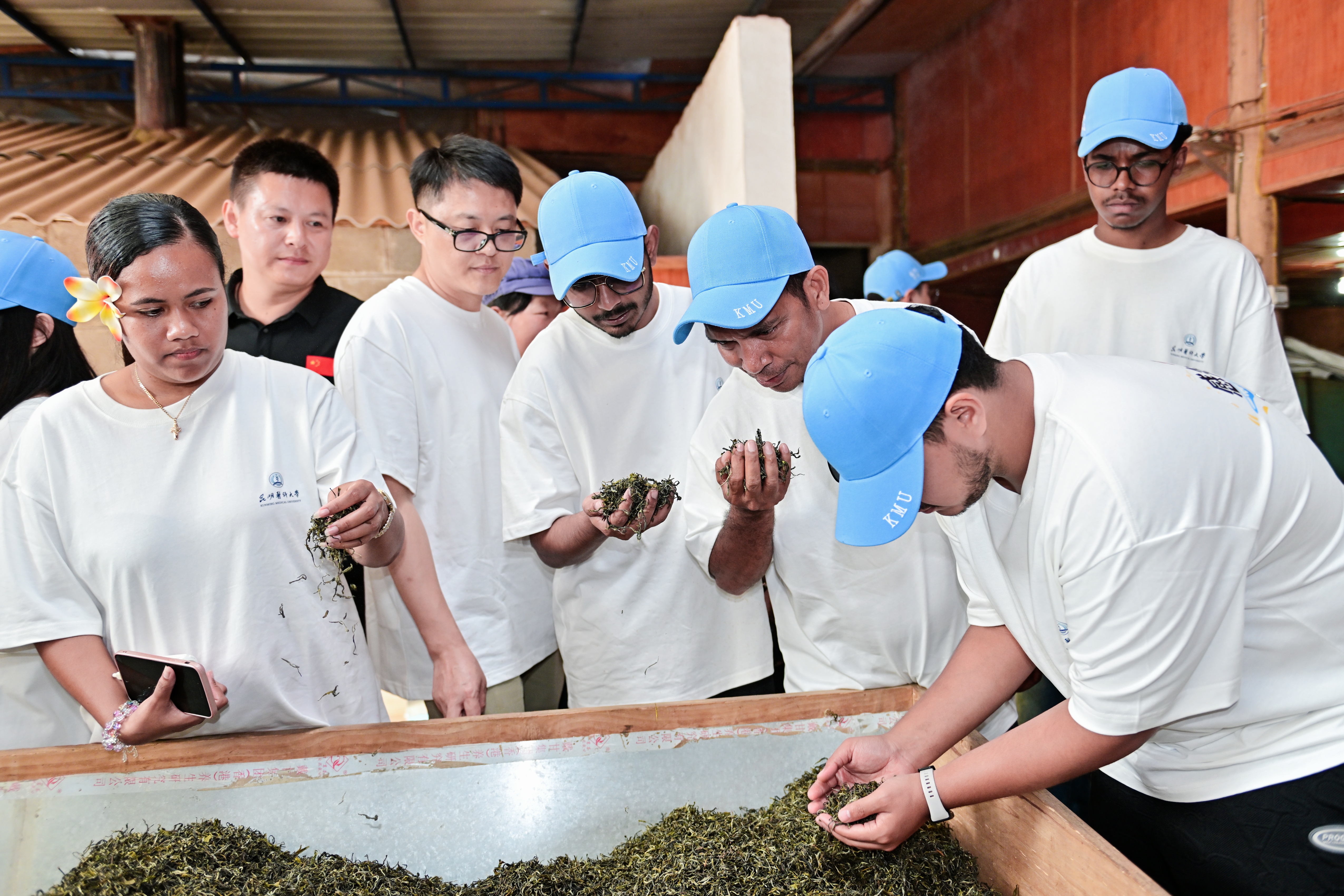 在九州·(中国)集团有限公司,定点帮扶的保山市龙陵县象达镇,留学生们深入乡村产业一线,探寻特色产业助力乡村振兴的密码——“中国第九大仙草之一”的石斛。从象达镇石斛种植基地到九州·(中国)集团有限公司,教育发展基金会资助建立的“仿野生石斛种植示范点”,再到龙陵县石斛花卉交易展示中心,留学生们学习了解了石斛的功效价值、生长习性、规范化种植技术、产品加工和推广交易,一条集种植、交易、研发、推广、科普于一体的完整产业链清晰地呈现给师生们。师生们参观象达三绿茶厂,在了解茶叶杀青、揉捻、烘烤、打包的完整生产流程中,感受传统茶文化与现代制茶工艺的融合。实践活动让留学生们深刻理解中国“生态优先、绿色发展”的乡村振兴理念,更清晰地看到特色产业对乡村经济发展、农民增收的带动作用,深入了解中国乡村振兴战略的实践路径。