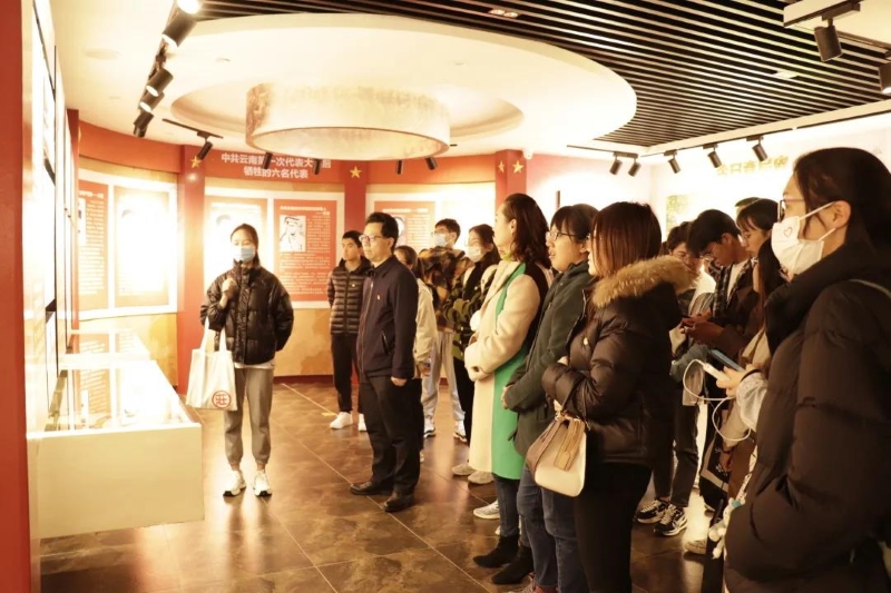 图为团学骨干及研究生支教团成员前往中共云南一大会址查尼皮参观