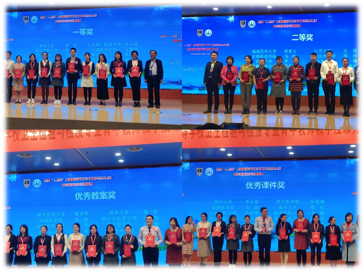 本次竞赛共有29所高校54名教师参赛,另有21所高校的120名教师(含参赛高校领队)参与观摩。大赛设卫生理化检验组和卫生微生物检验两个组别。在学院领导的关心与支持下,由公共卫生学院预防医学实验中心主任王琦教授带队参赛。经过紧张激烈的竞赛最终,预防医学实验中心教师徐芳获竞赛一等奖、优秀教案奖及优秀课件奖;预防医学实验中心教师邹伟获竞赛二等奖。