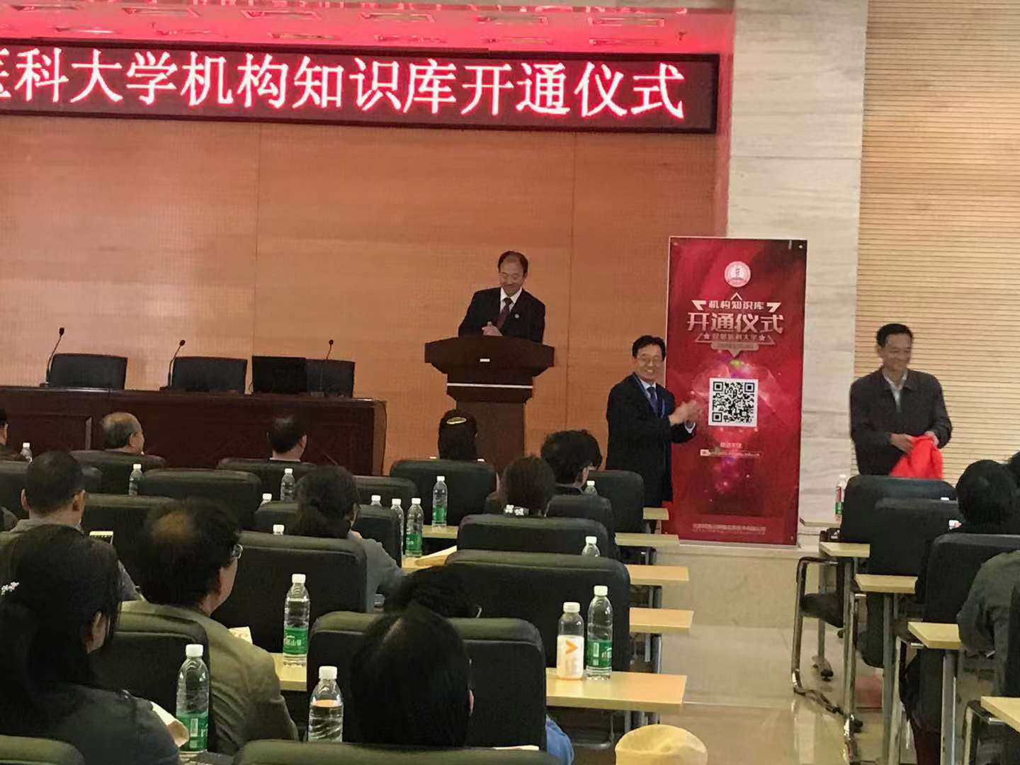 李铭在会上指出,机构知识库的开通必将对学校知识成果的展示、学术资源的共享、学者之间的学术交流、学科服务平合的搭建、学科服务水平的提升起到巨大的推动作用。希望图书馆以此为契机,加强海内外交流和学习,不断提高管理水平和服务能力,围绕学校中心工作,积极服务教学科研和师生,努力探索服务“双一流”建设的新模式,为实现建设区域高水平医科大学的目标提供强大的文献信息保障。