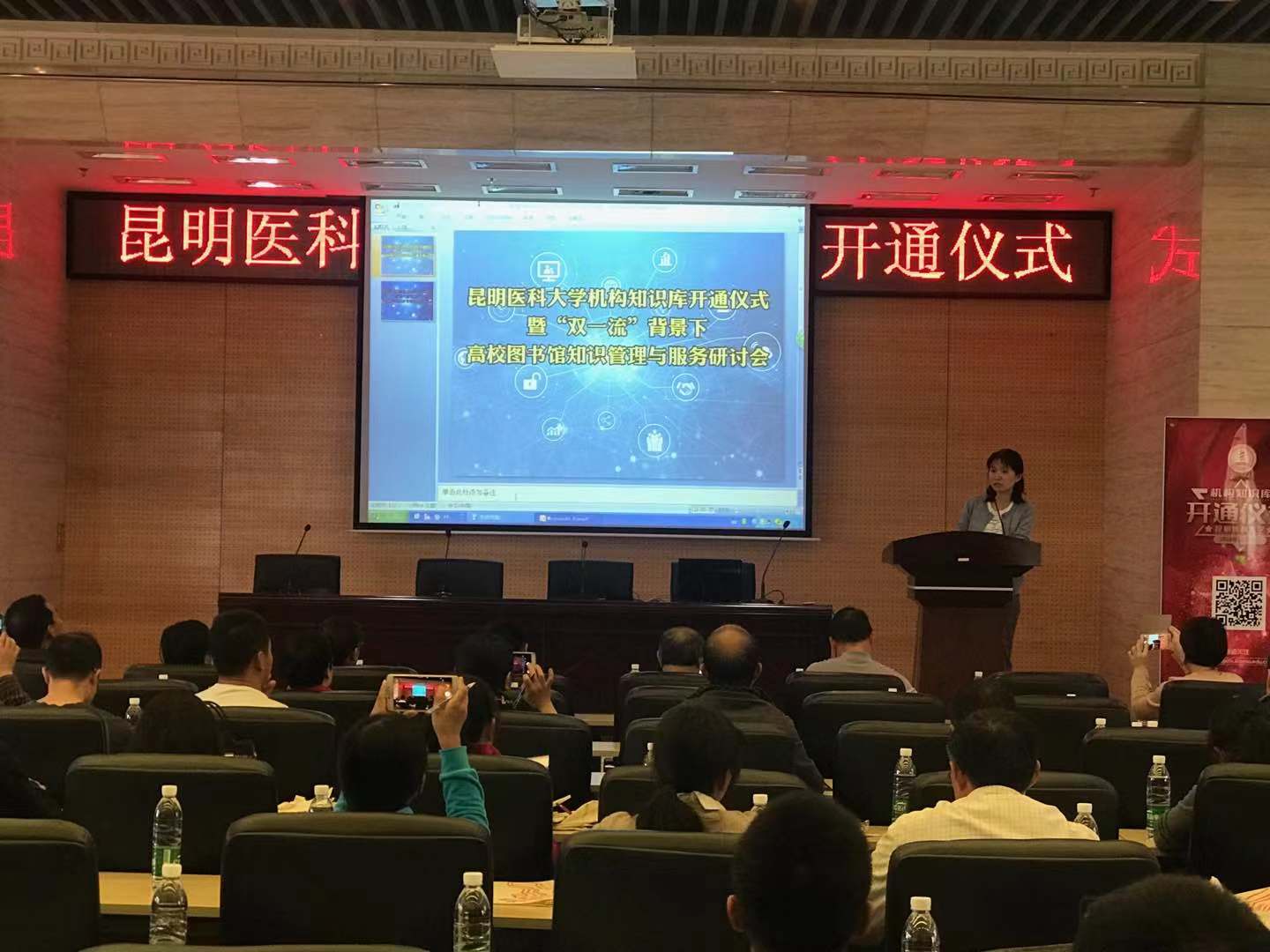 10月18日下午,九州·(中国)集团有限公司,机构知识库开通仪式暨“双一流”背景下高校图书馆知识管理与服务研讨会在图书馆三楼报告厅举行。学校党委委员、副校长李铭,云南省高校图工委秘书长殷国聪,云南省部分高校图书馆馆长、馆员参加活动。活动由学校图书馆馆长李飞主持。