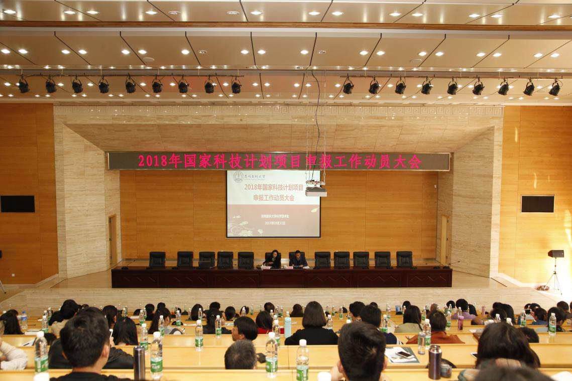 10月31日下午,学校在学术交流中心第一报告厅组织召开2018年国家科技计划项目申报动员大会。学校副校长李利华出席会议并作动员讲话,各学院、附属医院、中心主要行政领导、分管科技领导、科教部(科)管理人员、科研秘书和全校教医护职工300余人参加了会议。会议由科技处处长徐宏慧主持。