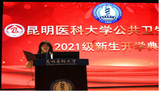 2021级预防医学一大班雷晓作为本科生新生代表发言。她交流了如何成为一个合格的公卫人:一是要适应变化,迎接挑战;二是勤学苦练,提升能力;三是勇于奋斗,砥砺前行,以永不懈怠的精神状态、欲望无穷的奋斗姿态和顽强拼搏的担当精神,更好的担负起时代赋予公卫人的使命。