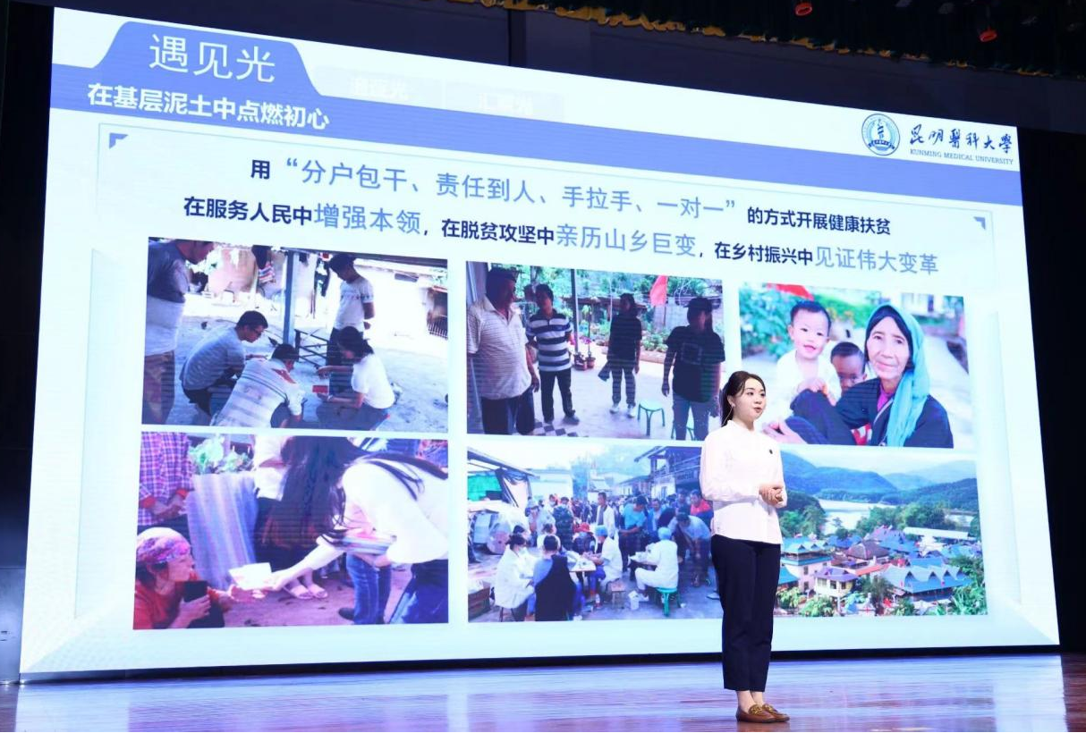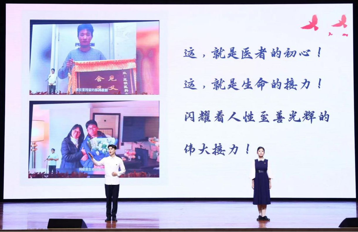 “榜样的力量”学习活动环节,邀请首届全国大学生职业规划大赛全国总决赛金奖获得者、“中国大学生自强之星”魏楠,救助洱海落水游客尹张骞和捐献造血干细胞蒋梦先故事的讲述者郑至远、张亦涵,2025年考研“全寝上岸”“学霸宿舍”代表马怡然等代表走上讲台,讲述青年学生们以行动诠释仁心,用奋斗定义青春的故事,引领青年学生汲取榜样的力量,传承“崇德博学 济世笃行”的校训精神,为健康中国、健康云南建设贡献青春力量。
