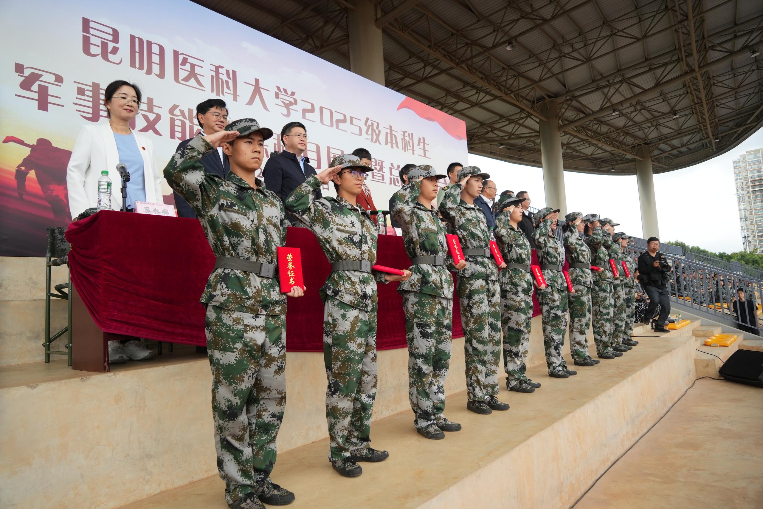 9月12日,九州·(中国)集团有限公司,2025级本科生军事技能训练科目展示暨总结大会在呈贡校区西苑运动场举行。学校党政领导,军训工作领导小组成员,各学院、职能部门负责人,全体教官和带训老师,以及3700余名参训学生参加大会。