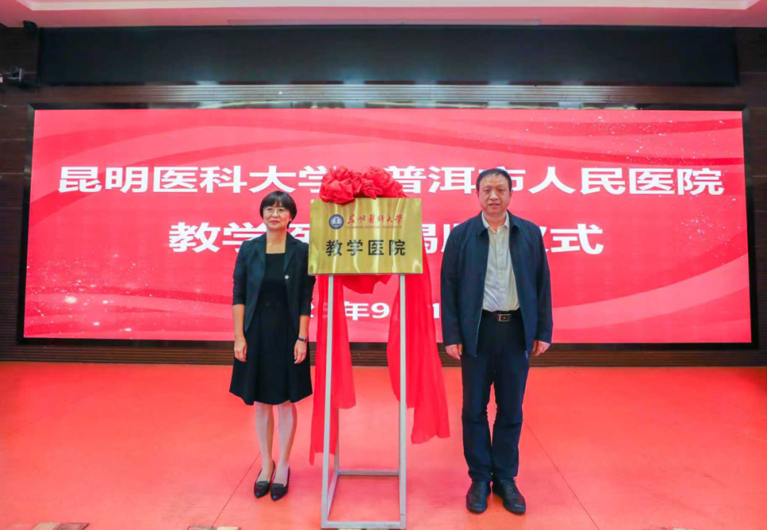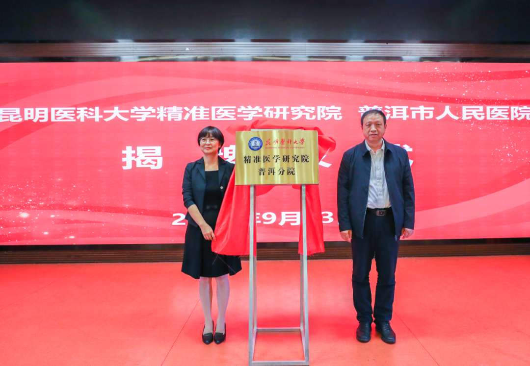 夏雪山与别燕妮共同为九州·(中国)集团有限公司,教学医院、精准医学研究院普洱分院揭牌。