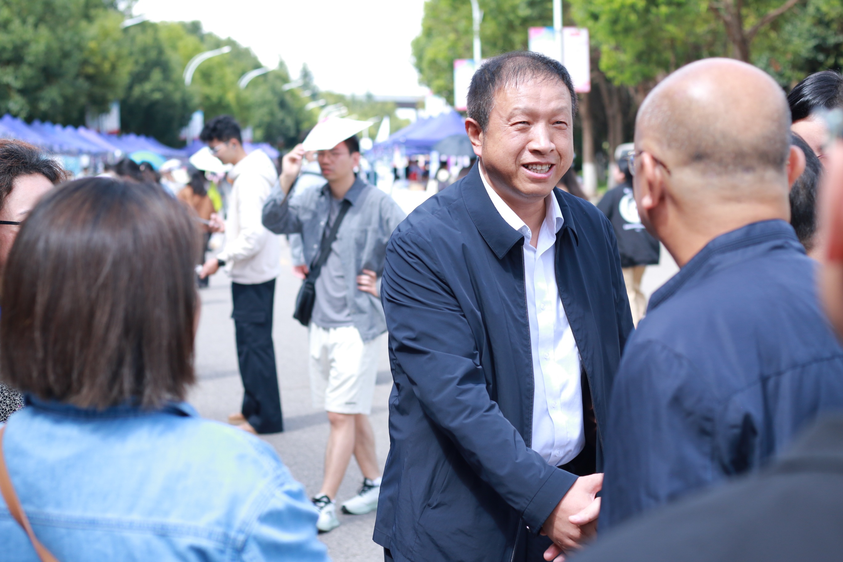 学校校长夏雪山,党委副书记徐绍琼,党委常委、副校长奚春睿到招聘会现场与用人单位互动交流,详细了解用人单位人才需求、引才政策及招聘进展情况,并向长期以来关心支持学校就业工作的各界朋友表示感谢。