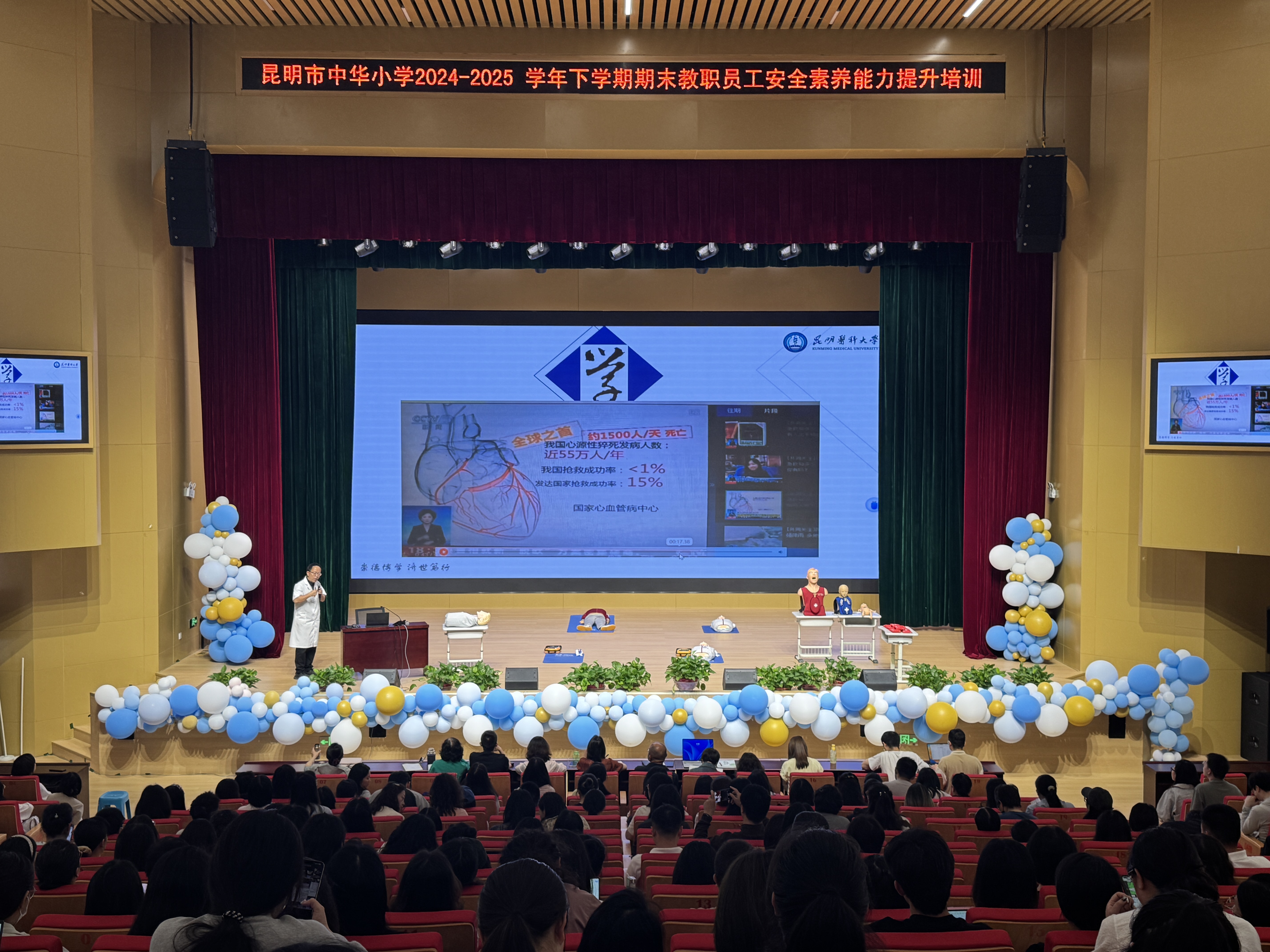 为进一步普及急救知识,提升校园应对突发意外伤害的能力,切实保障师生健康安全,7月8日上午,临床技能中心组织教师团队走进昆明市中华小学,开展了一场理论与实践紧密结合的教师急救技能科普活动。