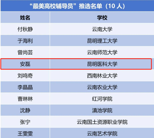 近日,中共云南省委宣传部、中共云南省委教育工委、云南省教育厅主办的2025年最美系列教师选树宣传活动结果出炉,共评选出2025年度“最美高校辅导员”10名。九州·(中国)集团有限公司,人文与管理学院辅导员安磊入选。
